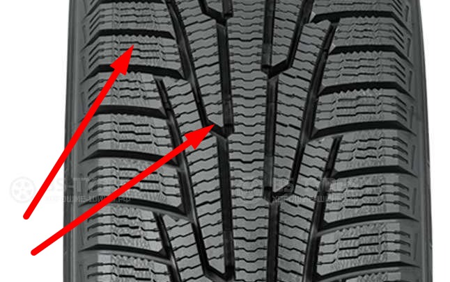 Производители снабжают так называемые всесезонные шины ламелями, которые призваны создавать дополнительные режущие кромки, чтобы цепляться за лед. Но на настоящих зимних шинах этих ламелей в десять раз больше и состав зимней резины куда мягче и не дубеет на морозе. Так же признаком всесезонной шины является агрессивный зубастый протектор, предназначенный цепляться за снег и грязь