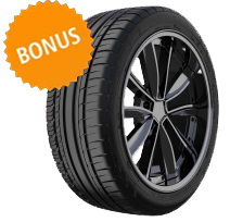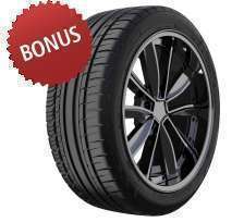 Статус бонуса отображается на картинке в конечной карточке товара (не в карточки модели), под наименованием шины: