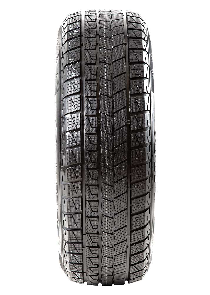 По краям протектора расположены массивные почти квадратные блоки, которые играют важную роль при активном вождении. Их плотное размещение способствует повышению устойчивости при прохождении поворотов и предотвращает боковое проскальзывание. Такая конструкция позволяет автомобилю сохранять заданную траекторию, не теряя контроля даже при смене направления на заснеженных дорогах. Усиленная структура боковин дополнительно поддерживает форму покрышки при боковых нагрузках, обеспечивая четкий отклик на движение рулевого колеса.