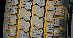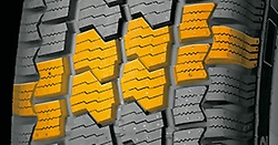 - Сцепление. Многочисленные зигзагообразные ламели улучшают сцепные качества на снегу и льду. Разветвленная система дренажа отводит жидкости и препятствует аквапланированию.