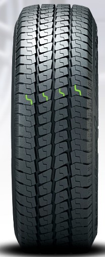 - Двухслойная конструкция протектора позволяет совместить износостойкость с высокими эксплуатационными свойствами. Беговая дорожка выполнена из мягкой изнашиваемой резины, когда внутренний слой, который обеспечивает целостность конструкции, состоит из смеси с малыми гистерезисными потерями. Покрышка создает четкий контакт с дорогой, получая при этом минимальный нагрев.