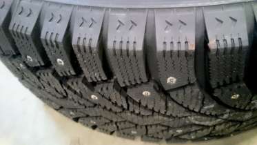 - Устойчивость на льду и гололедице. Лентовидное центральное ребро состоит из многоугольных ламелированных блоков. Элемент контролирует положение автомобиля на виражах и при прямолинейных ускорениях. Шипы успешно удерживают авто на дороге четко в заданном водителем направлении. Покрышка не «заваливается» и быстро откликается на повороты руля.