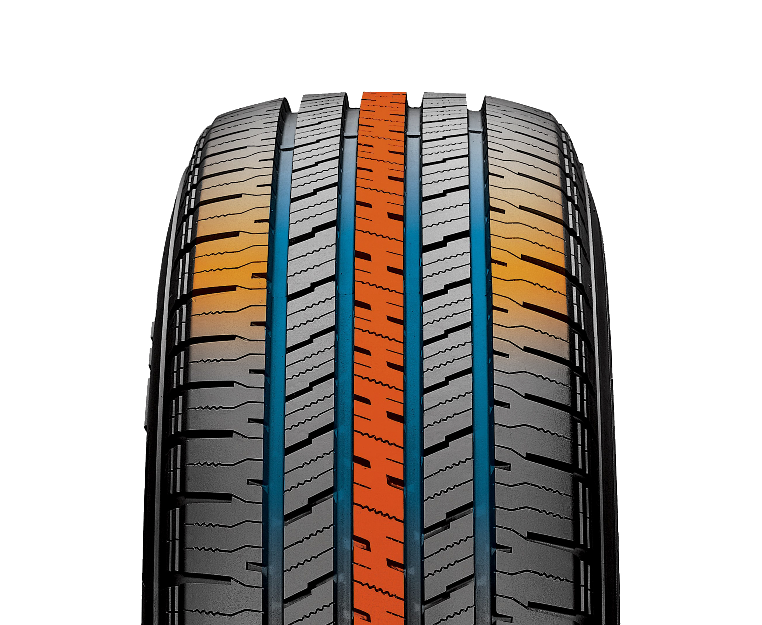 Пять ребер уменьшают вибрации и шум, а сбалансированная жесткость снижает сопротивление качению, что помогает экономить топливо.