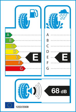 - Класс энергоэффективности "Е" означает, что с шинами данной модели авто будет потреблять меньше горючего, чем при использовании дешевых аналогов.