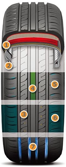 - Укрепленная боковина. Дополнительный металлокорд из стали обеспечивает стойкость к механическим повреждениям. Когда шина наезжает на твердый предмет, усиленная часть боковины «пружинит» и распределяет удар по поверхности равномерно. Это снижает вероятность получить серьезное повреждение.