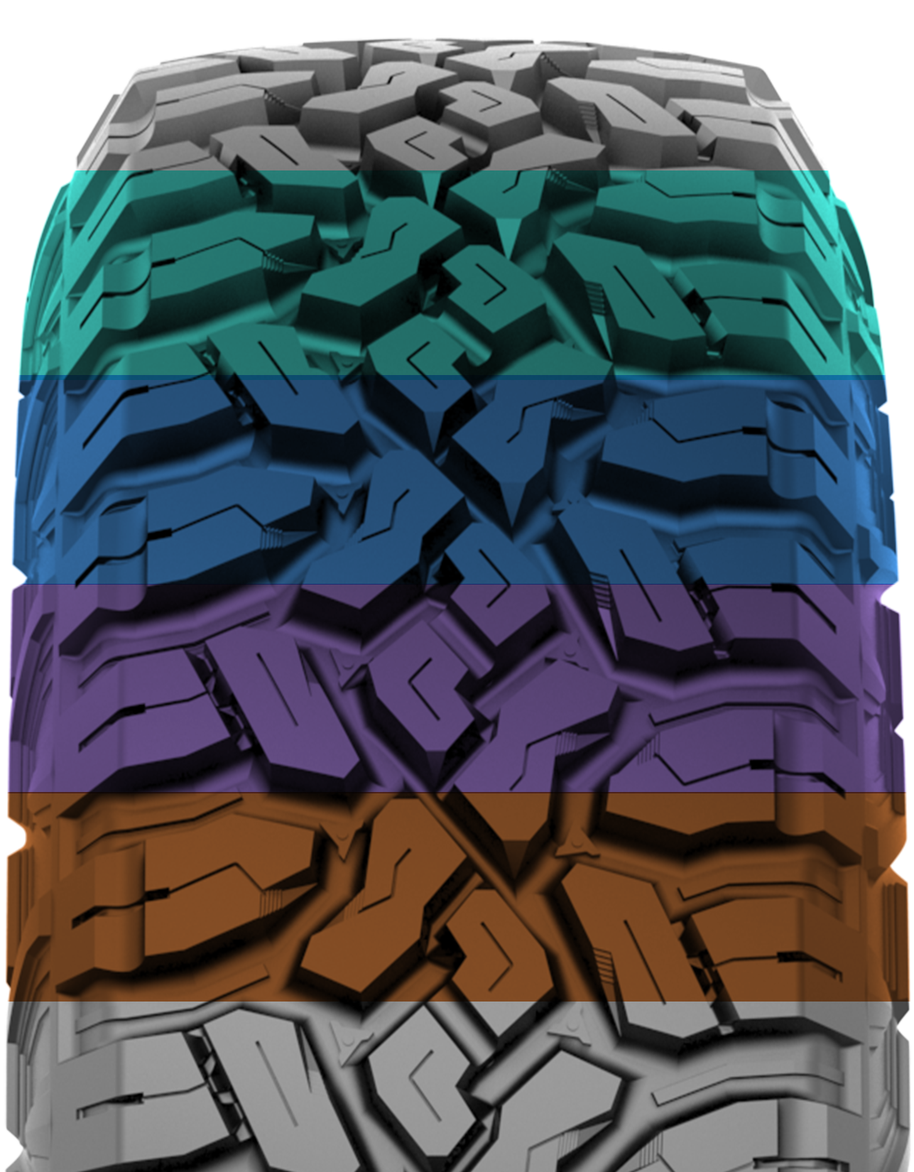 Уникальная конструкция протектора и переменное расположение блоков снижают уровень дорожного шума и вибраций. Благодаря этому покрышка показывает более плавное и тихое движение по асфальту, чем классические грязевые модели.