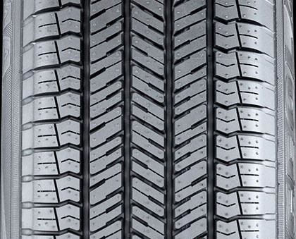 Также на протекторе имеется четыре дренажных канала, которые сочетаются с большим количеством поперечных желобков. Эти канавки образуют систему водоотвода, предназначенную для защиты от аквапланирования.